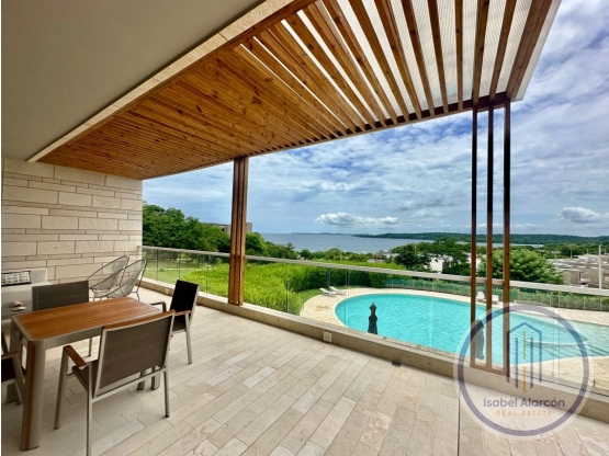 Este hermoso apartamento ubicado en la torre 1, cuenta con una amplia terraza en forma de "L" para disfrutar de los mas bellos paisajes desde cualquier parte de el apartamsnto. Sus ventanas piso a techo, le dan una iluminacion natural que se conjuga con los paisajes sobre el mar Caribe y con la naturaleza . Con una amplia sala, comedor, cocina tipo americano, despensa, 3 habitaciones cada una con su baño, salon de TV o estudio, amplia zona de labores, cuarto y baño del servicio, baño social , 1 parqueadero y 1 deposito, te brindaran todo lo que necesitas para disfrutar con tus familiares y amigos .